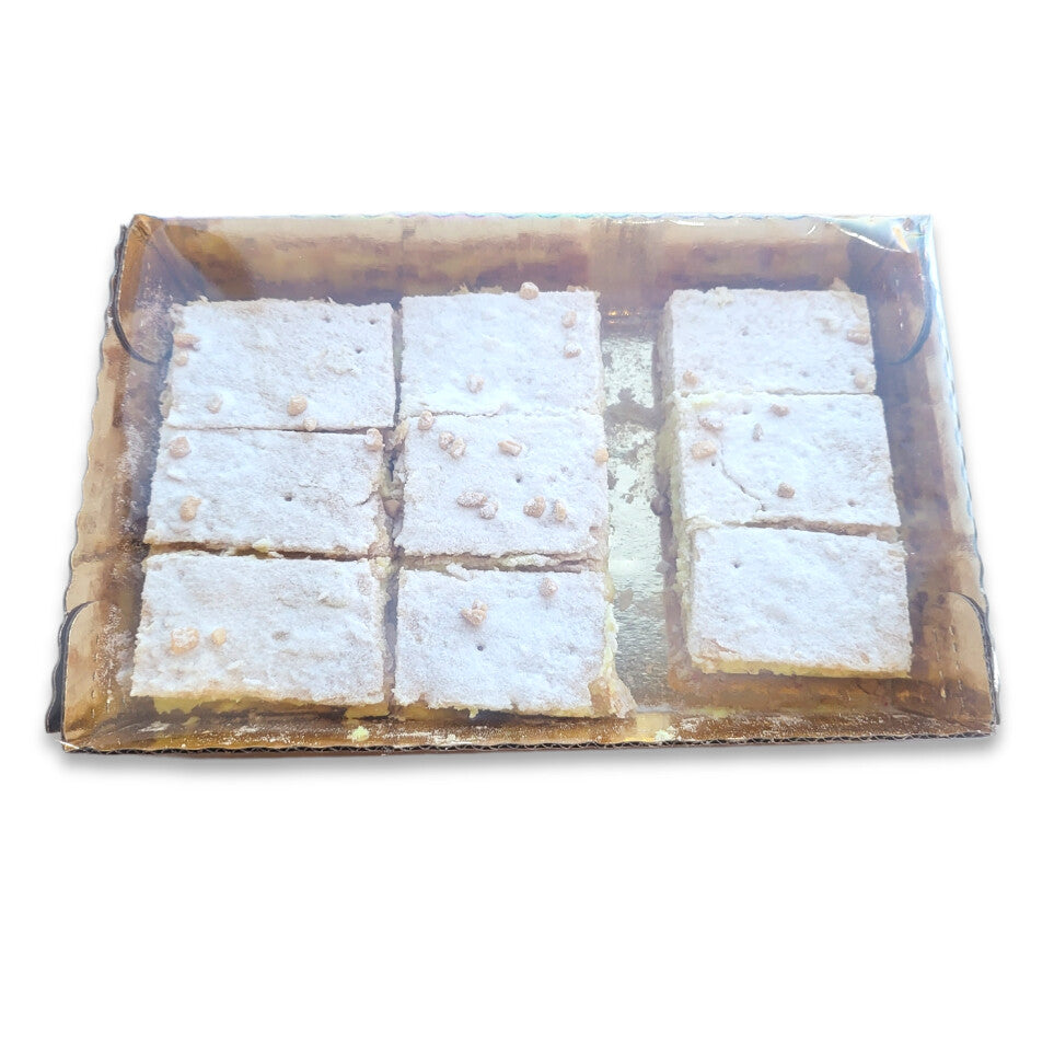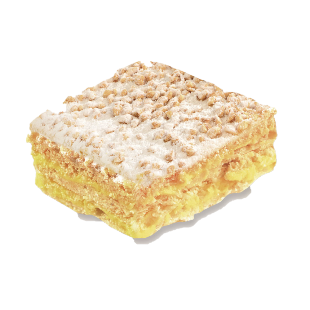 La pasta sfoglia è realizzata solo con i migliori ingredienti, tra cui limoni freschi e burro di alta qualità, per garantire un gusto ricco e autentico. La crema al limone è leggera e ariosa, offrendo il perfetto equilibrio tra sapori aspri e dolci. La consistenza friabile e croccante della pasta sfoglia si sposa perfettamente con il cremoso ripieno al limone, creando una delizia golosa e irresistibile.