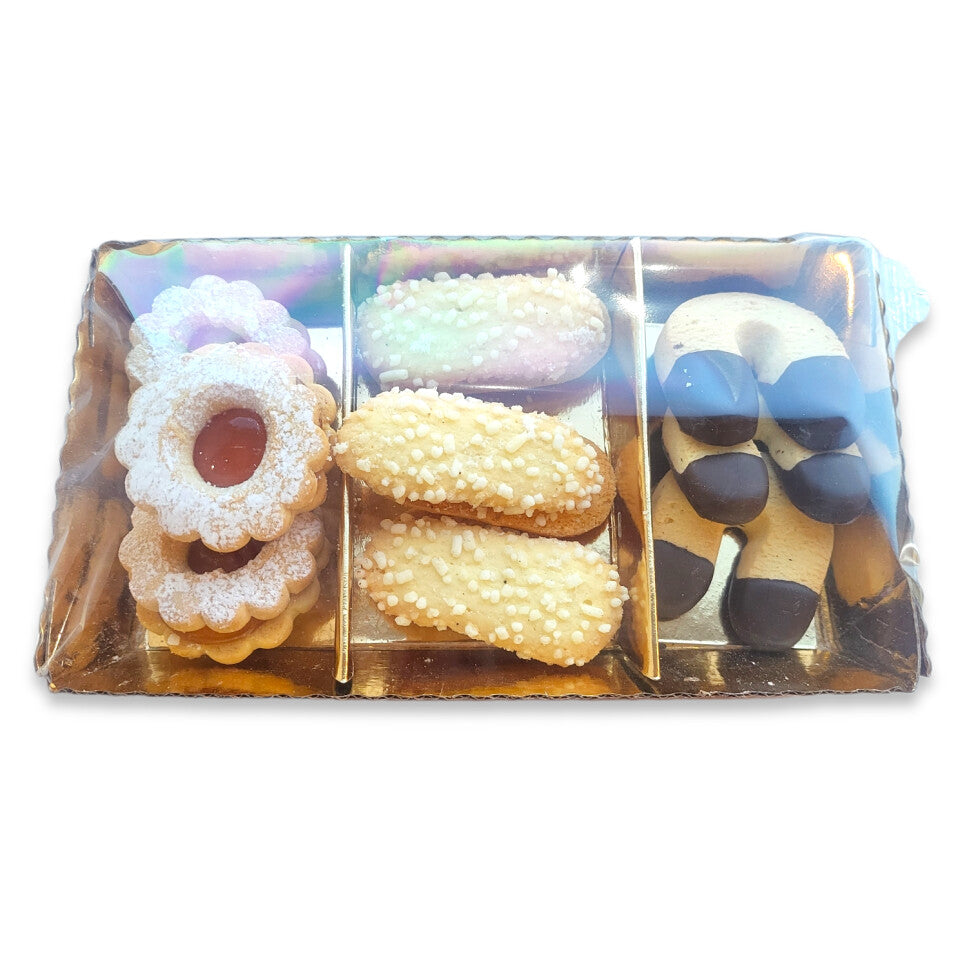 Ogni biscotto è realizzato solo con i migliori ingredienti, tra cui frutta secca fresca, cacao pregiato e aromi naturali di frutta, per garantire un gusto genuino e autentico. La varietà di sapori e consistenze di questo assortimento lo rende il dolce perfetto da condividere con amici e familiari o da gustare da soli come spuntino.