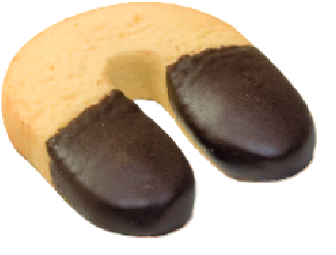 Ingredienti : Farina di GRANO tenero tipo "0", Margarina: (oli e grassi vegetali non idrogenati. Grassi (palma), Oli (girasole e colza in proporzione variabile.), Acqua, Emulsionante (E471), Regolatore di acidità (E330)), zucchero, UOVA, emulsionante (lecitina di SOIA), lievito in polvere (difosfato disodico, carbonato acido di sodio, amido di GRANO), sale, aromi. Glassa: Dischi fondenti (zucchero, grassi vegetali non idrogenati (palmisti, palma), cacao magro (11% burro di cacao) in polvere, emulsionante: (E476, aromi).
