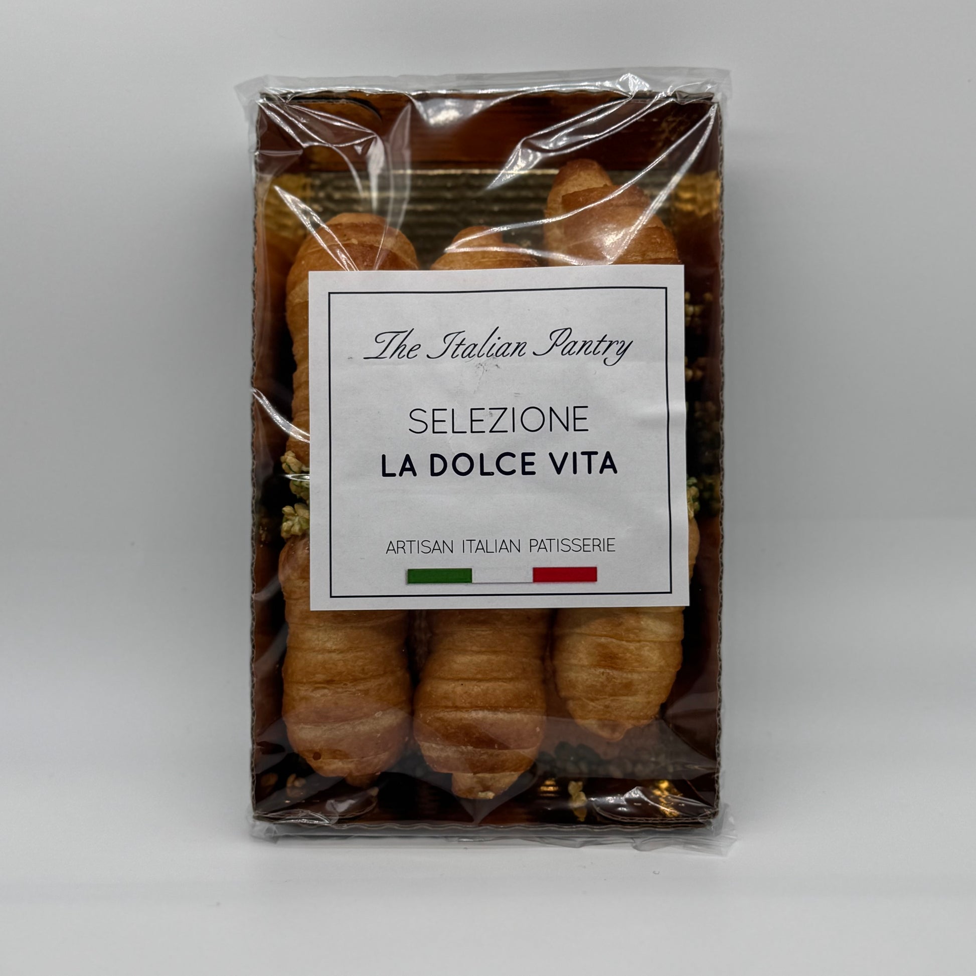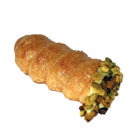 Cannolo di pasta sfoglia alla crema di pistacchio con granella di nocciole 200g
