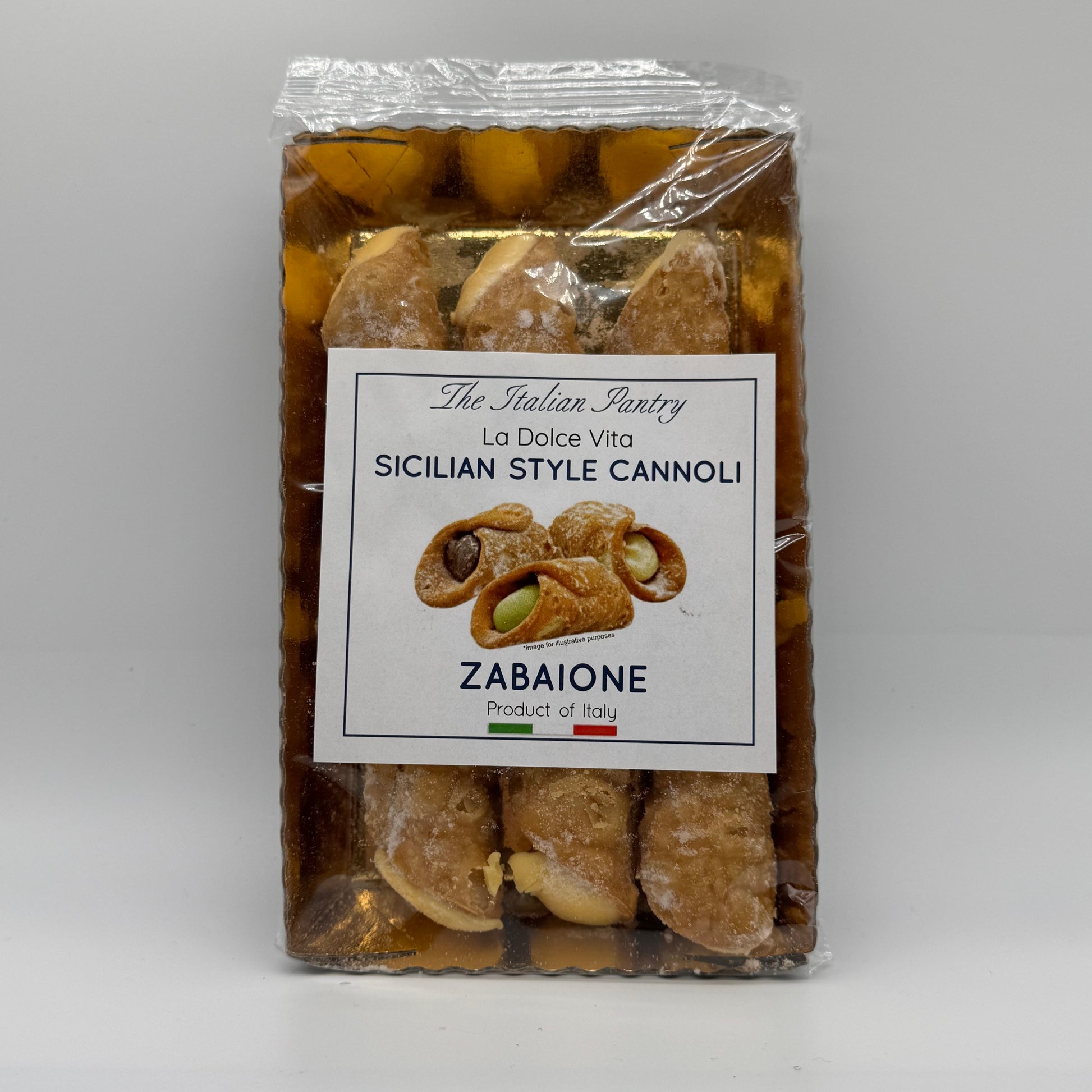 Oli e grassi vegetali, acqua, emulsionanti (E471, E322, lecitina di SOIA), sale, (conservante E202), correttore di acidità (E330), aromi], acqua, vino, cacao, aromi, UOVA, fritte in olio di palma. Ripieno: zucchero, sciroppo di glucosio, marsala (Florio), acqua, UOVA, tuorlo d'UOVO pastorizzato, LATTE scremato in polvere, amido di riso, aromi, estratto di cartamo, coloranti (annatto, riboflamina).